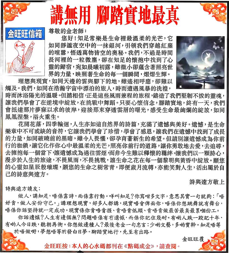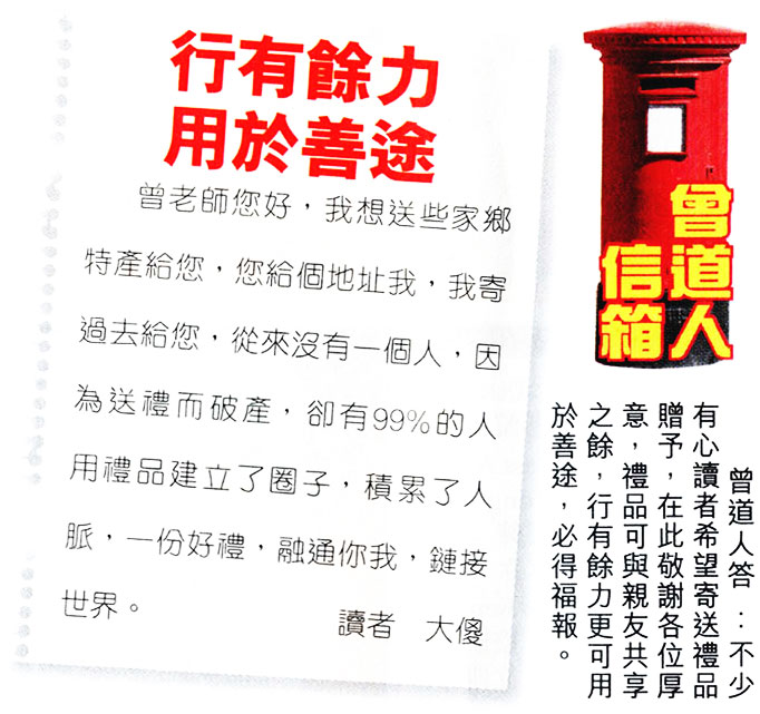 标题: 107期:〖貼信讀者論壇〗〖曾道人信箱〗〖金旺旺信箱〗