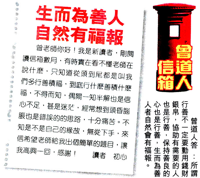 标题: 125期:〖貼信讀者論壇〗〖曾道人信箱〗〖金旺旺信箱〗